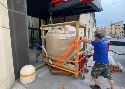 San Michele Traslochi d’Imperia s’occupe du déplacement et du transport d’œuvres d’art, d’expositions et d’antiquités : sculptures, peintures, tableaux précieux et meubles anciens, en fournissant un service sur mesure pour chaque type de bien. Couverture d’assurance modulaire en fonction des besoins du client et des valeurs des œuvres d’art transportées. La société d’Imperia prend en charge toute réalisation artistique en réalisant des transports d’œuvres d’art et de meubles anciens en les emballant avec le plus grand soin, avec des matériaux appropriés et en respectant les bois et les décorations qui les composent, à l’aide de caisses en bois sur mesure pour les tableaux, les toiles et les peintures et de structures spéciales créées sur place par leurs menuisiers.
